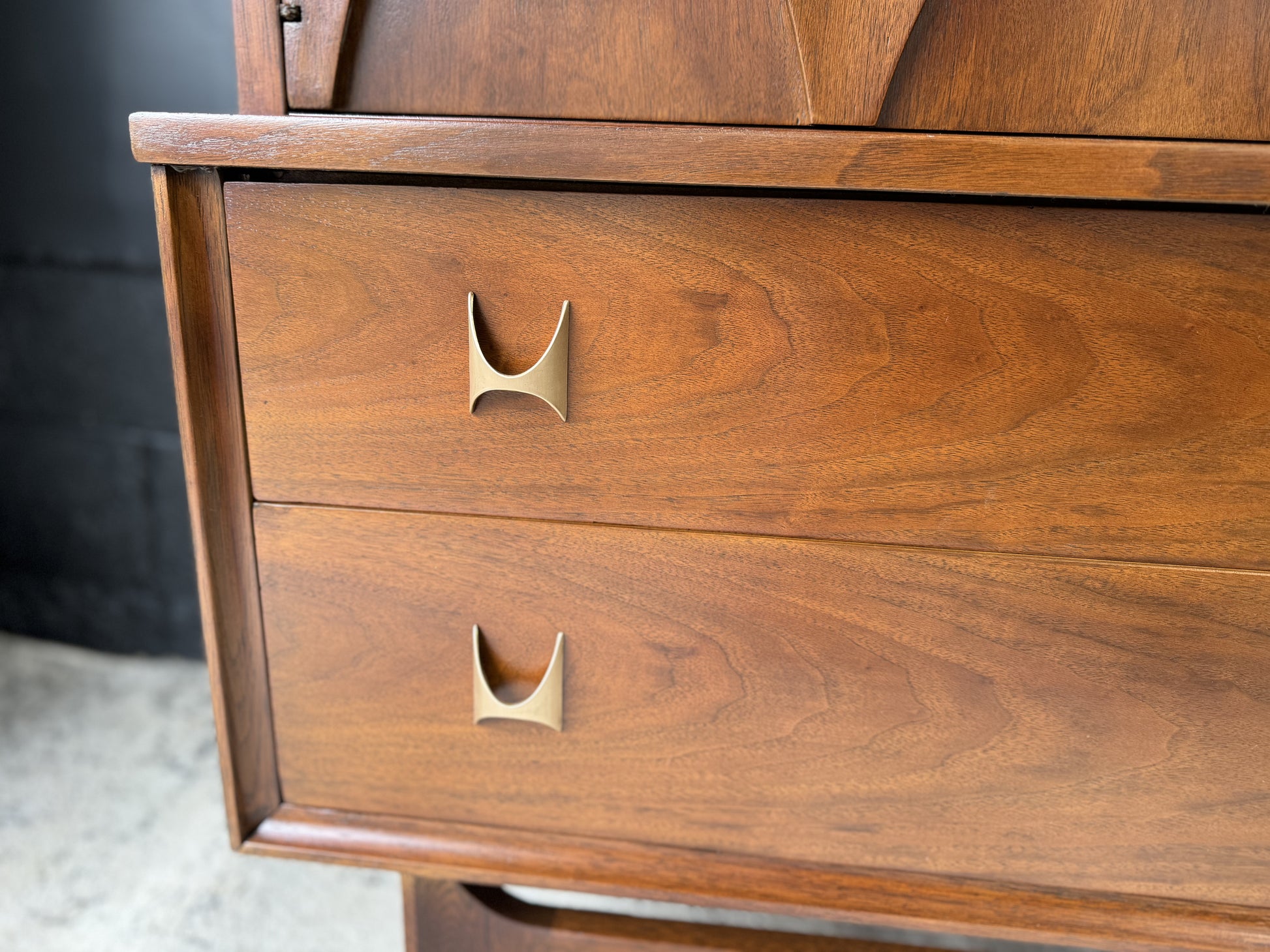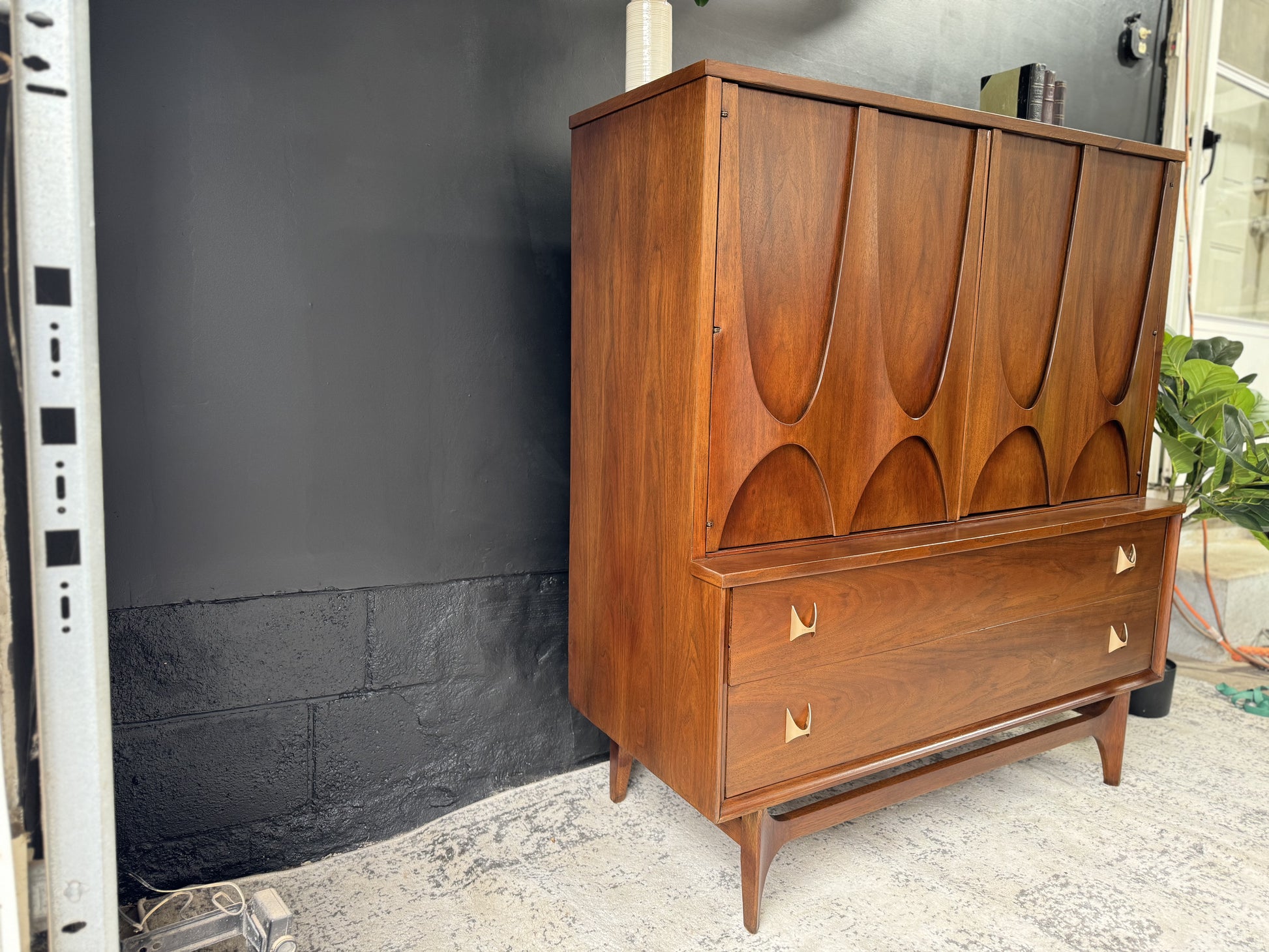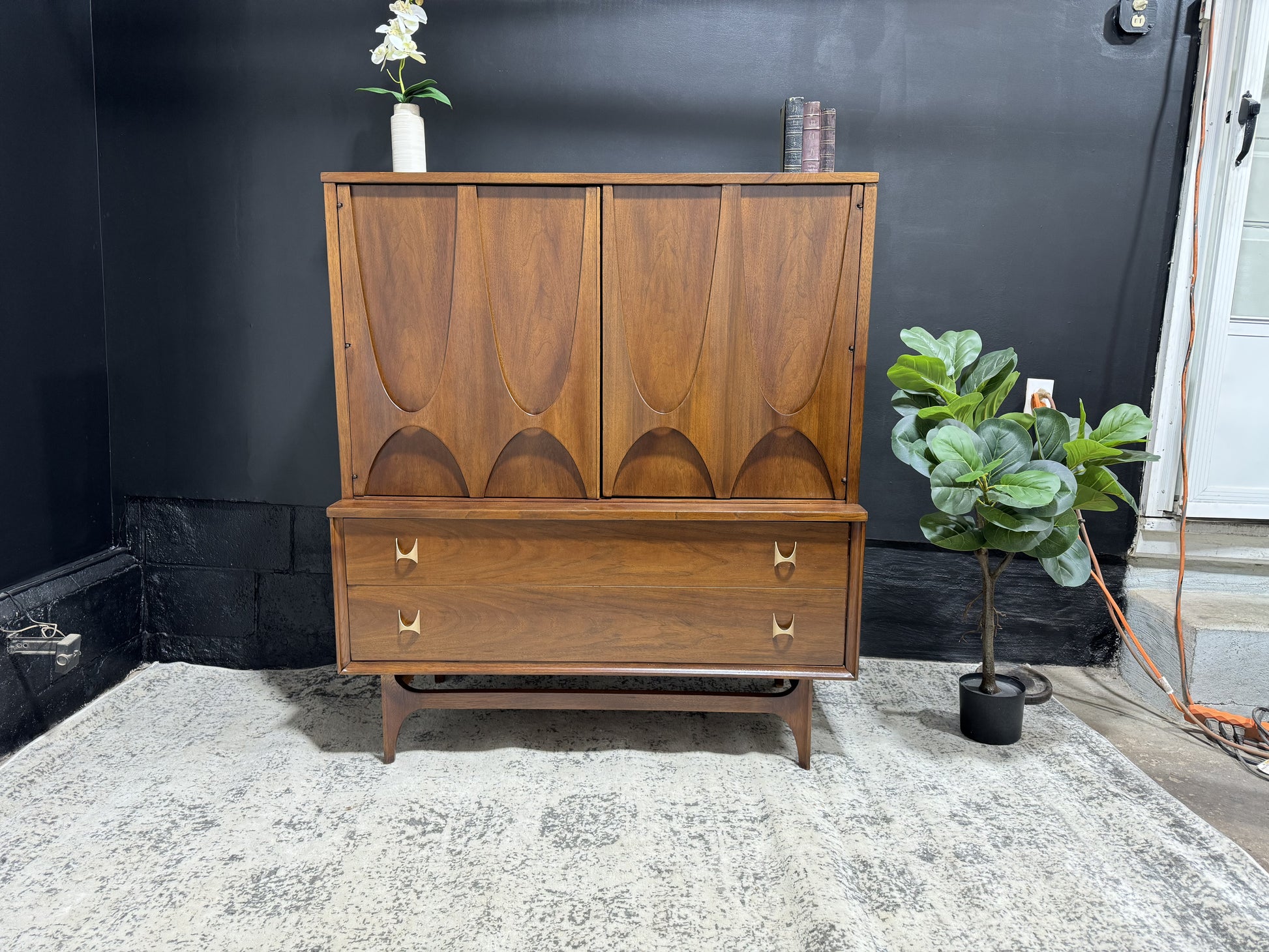 Embrace sophistication with the Broyhill Brasília Gentleman’s Chest – a distinguished blend of style and functionality. Crafted with precision and adorned with the iconic Brasília design, this chest offers ample storage for your wardrobe essentials. The sleek lines and warm wood tones create a timeless appeal, making it a focal point in any bedroom. Elevate your space with this mid-century masterpiece that seamlessly marries form and function.