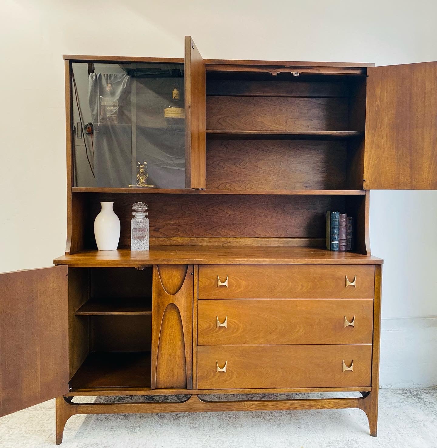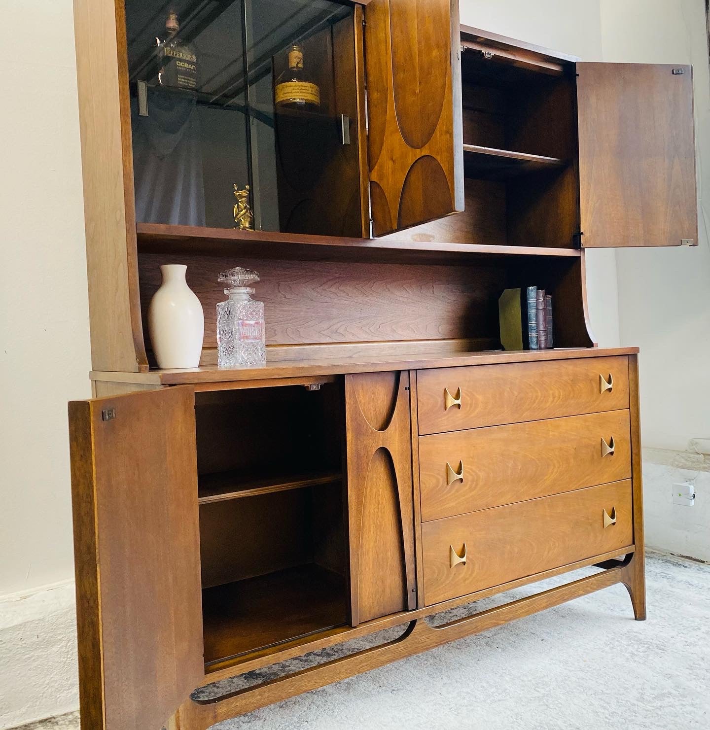 The Brasilia hutch isn't just furniture, it's functional art. Whether used as a dining room china cabinet, bar cabinet, or office storage, this showstopper adds timeless sophistication and unmistakable mid-century style to any space.