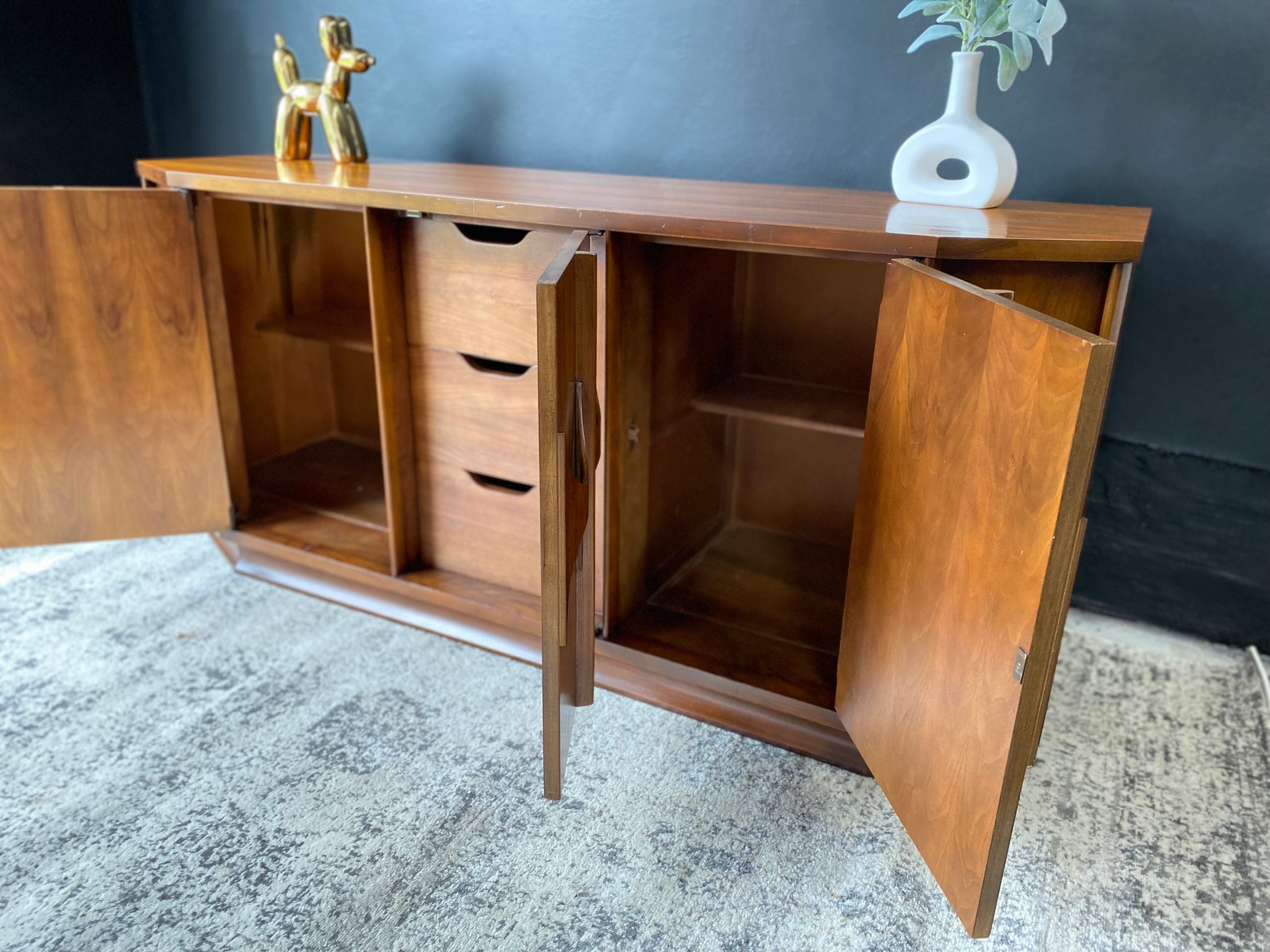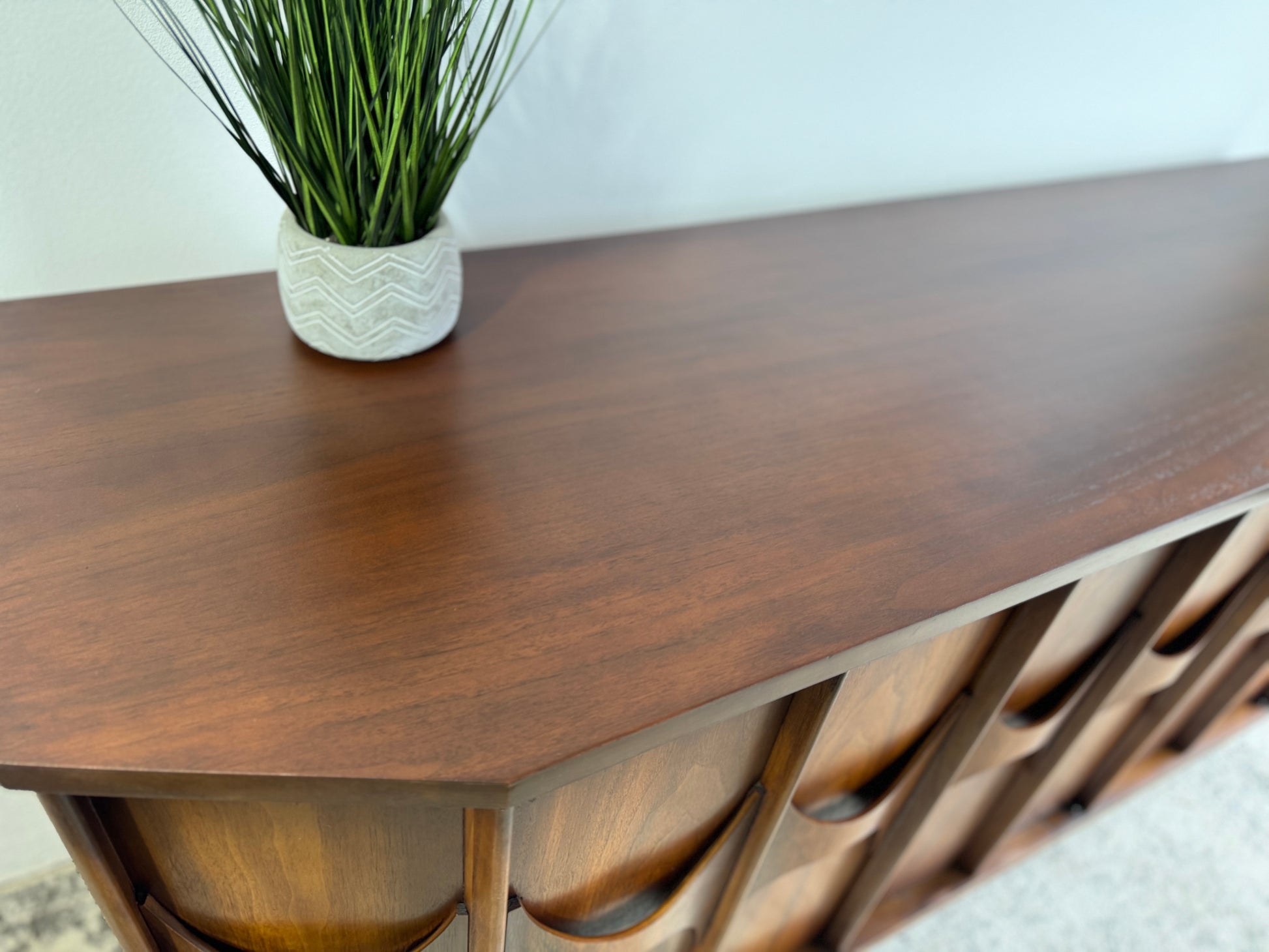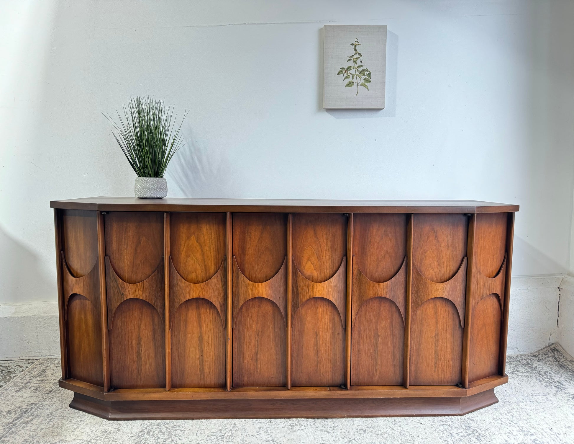 Introducing the Kent Coffey Perspecta Pedestal Credenza – a timeless blend of mid-century elegance and modern functionality. Elevate your living space with this iconic piece that seamlessly marries form and function. Crafted with precision and attention to detail, the credenza boasts exquisite woodwork and a distinctive design that will be the focal point of any room. Practical storage meets aesthetic appeal with spacious drawers and a sleek pedestal base. Don't miss the chance to bring home a touch of design history – make this Kent Coffey masterpiece yours today.